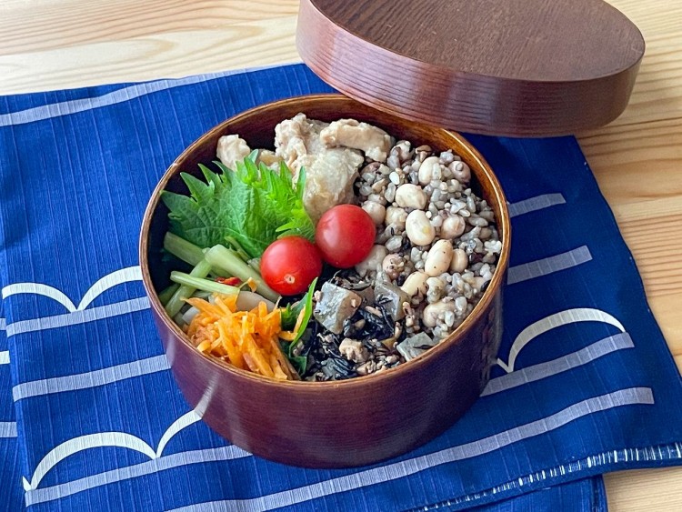 2025/08/18 きょうのお弁当 豚肉とエリンギの黒ごま炒め、ほうれん草お浸し、ズッキーニのカレーソテー、きんぴら、大学芋、枝豆ちりめんごはん。 ···